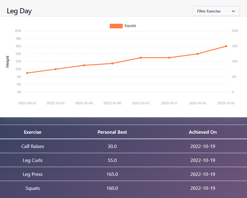 Track your performance over time and watch yourself improve! Use the personalized dashboards to track your personal records, weights, favorite routines, and more.