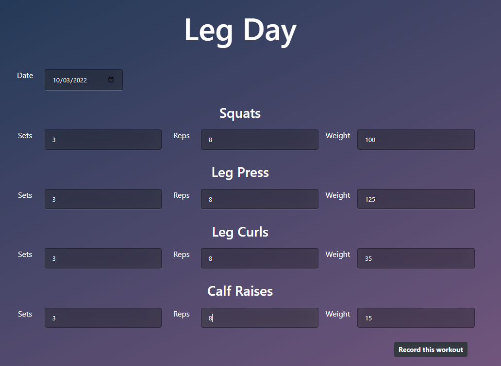 Add your favorite workout routines to start logging workouts and document your progress.